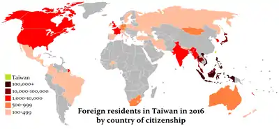 32. "Interactive chart shows how foreigners are distributed in Taiwan | Taiwan News | 2018-04-07 18:21:00". 7 April 2018.