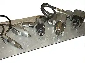 Pneumatic impact wrench brands that are commonly used in shop and construction application include Ingersoll Rand, Snap-On, MAC Tools, Matco, and Chicago Pneumatic. Cordless impact wrenches that are commonly used are made by Milwaukee, DeWalt, Makita, and Bosch. For specialized applications such as pitstops in motorsport, where a high amount of torque must be applied to a wheel nut in a short amout of time. Modified Ingersoll Rand impact wrenches were commonplace in NASCAR competition until the start of the 2022 season,[3] when center-lock wheels were introduced and the old Ingersoll Rand wrenches were replaced by Paoli impact wrenches, which are used extensively in Formula One, Indycar, and the World Endurance Championship.[4]