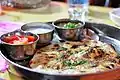 | Chaat | ![]() | Many types and variations of chaat, which is a term describing savory snacks, are typically served at road-side tracks from stalls or food carts.[5][6] |