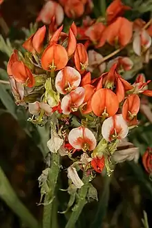 - ↑ Schrire BD, Lavin M, Barker NP, Forest F (2009). "Phylogeny of the tribe Indigofereae (Leguminosae-Papilionoideae): Geographically structured more in succulent-rich and temperate settings than in grass-rich environments". Am J Bot. 96 (4): 816–52. doi:10.3732/ajb.0800185. PMID 21628237.