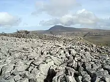 Ingleborough (723 m or 2,372 ft) is the second-highest mountain in the Yorkshire Dales, England.[1] It is one of the Yorkshire Three Peaks (the other two being Whernside and Pen-y-ghent), and is frequently climbed as part of the Three Peaks walk. A large part of Ingleborough is designated as a Site of Special Scientific Interest[2] and National Nature Reserve[3] and is the home of a new joint project, Wild Ingleborough, with aims to improve the landscape for wildlife and people.[4]
