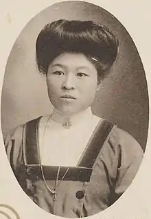 Inokuchi Akuri was born in Akita Prefecture. Sponsored by the Japanese government,[1] she attended Smith College and Wellesley College,[2] and studied physical education with Senda Berenson[3][4] at the Boston Normal School of Gymnastics, founded by Mary Tileston Hemenway.[5] "There is a great desire to make women strong in Japan," she explained to a Boston newspaper in 1901, "and so my government sent me over here to study how to increase our women's strength."[6]