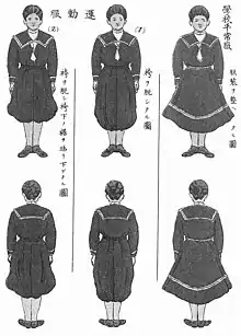 Inokuchi was a teacher in Tokyo before her time in the United States.[7] On her return to Japan in 1903, Inokuchi taught physical education at Girls' High School in Tokyo,[8][9] and introduced a women's exercise costume of bloomers and middy blouses and calf-length skirts, for comfortable vigorous movement.[10][11][12] She published a report, Taiiku no riron oyobi jissai (Theory and Practice of Physical Education) in 1906.[4] She is considered one of the pioneers of women's modern physical education in Japan.[13]