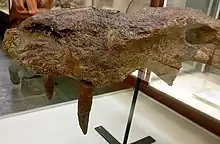 Other species belonging to distinct lineages were sometimes inadvertently classified in the genus Inostrancevia. For example, in 1940, Efremov classifies a gorgonopsian of then-problematic status as I. progressus.[8] However, in 1955, Alexey Bystrow moved this species to the separate genus Sauroctonus.[8][14][24] A large maxilla discovered in Vladimir Oblast in the 1950s was also assigned to Inostrancevia, but the fossil would be reassigned to a large therocephalian in 1997, and later designated as the holotype of the genus Megawhaitsia in 2008.[25]
