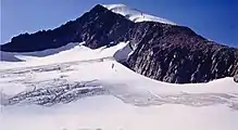 Inspiration Glacier is on the east slopes of Eldorado Peak, North Cascades National Park in the U.S. state of Washington.[2] The glacier is approximately 1.5 mi (2.4 km) in length, 2 mi (3.2 km) in width at its terminus and descends from 8,500 to 6,800 ft (2,600 to 2,100 m). Inspiration Glacier lies in a cirque with Eldorado Peak to the west, the arête known as Tepeh Towers to the northwest and Klawatti Peak to the northeast. Inspiration Glacier is connected to the Eldorado Glacier to the south and partially separated by the Tepeh Towers from the McAllister Glacier to the north.[2] Meltwaters from Inspiration Glacier flow into Moraine Lake.