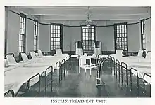 ![]() Insulin shock therapy administered in Långbro Hospital, Stockholm in the 1930s | |
