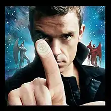The album's artwork was designed by Grant Morrison and Frank Quitely, in response to Williams' request that they "turn [Williams] into a superhero" for the tour.[4] The "talismanic images" and "witchy hieroglyphs" include a "sigil" that, in Morrison's words, "can be activated by finding the CD in the shops or pulling the cover up on-screen and pressing Rob's finger. If enough of us do this the world will most certainly enter a new Golden Age of peace, creativity, and prosperity!"[4]
