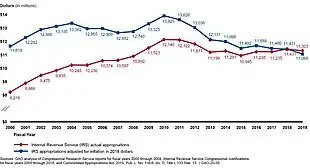 - ↑ "IRS workforce over time". Tax Policy Center. July 4, 2022. Retrieved May 29, 2023.