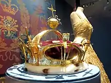 The 1911 gold coronet, having gone missing, needed to be replaced in 1969, though by one with a modern design. After the death of the Duke of Windsor – the former Edward VIII – in 1972, the old coronet was found in his possessions.[5]