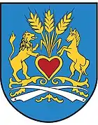 The coat of arms of Inzersdorf shows three ears of grain growing out of a heart, framed by a golden lion and a golden horse.