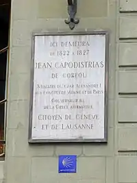 Commemorative plaque at the house of Kapodistrias in Geneva, Switzerland