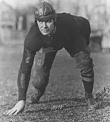 As captain of the 1920 football team, Huffman led the Buckeyes to a Western Conference championship. In the 1920 game against Michigan, he blocked a punt by All-American Frank Steketee, which the Buckeyes recovered in Michigan's endzone for a touchdown, the key play in Ohio State's 14–7 win.[2] Huffman was selected as a first-team All-American by syndicated sports writer Lawrence Perry in 1920 and 1921.[3] In 1921, he was selected as a first-team All-American tackle by Football World, based on the collected opinions of 267 coaches.[4] After Ohio State lost to California, 28–0, in the 1921 Rose Bowl, Huffman told reporters, "We were defeated, but at the same time we are not downhearted. I admit that we seemed to lack our usual pep but I do not believe that California is twenty-eight points better than Ohio. It was a great game, and I hope that we will have another opportunity to meet California and reverse the tables."[5]