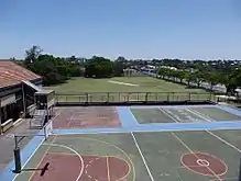 After 1958 the school grounds also expanded, beginning with land acquired southeast of Block B by 1969.[97] Land was also obtained in 1973, fronting Fitzgibbon Street to the east of the school.[98] By 1974 the grounds covered 2.7 hectares (6.7 acres), including land east of the school residence on Lawrence Street, and land fronting Pine Street; and by 1977 the school covered 2.9 hectares (7.2 acres), with additional Pine Street frontage.[99][100] [1]