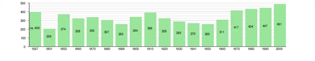 As of 2000, there were 190 private households in the municipality, and an average of 2.5 persons per household.[7] There were 51 households that consist of only one person and 7 households with five or more people. Out of a total of 194 households that answered this question, 26.3% were households made up of just one person and 5 were adults who lived with their parents. Of the rest of the households, there are 47 married couples without children, 76 married couples with children There were 8 single parents with a child or children. There were 3 households that were made up unrelated people and 4 households that were made some sort of institution or another collective housing.[8]