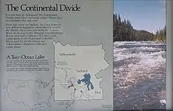 Isa Lake is believed to be one of the few natural lakes in the world which drain to two different oceans, another being Wollaston Lake.[4] (For similar cases see List of unusual drainage systems.) The east side of the lake drains by way of the Lewis River to the Pacific Ocean and the west side of the lake drains by way of the Firehole River to the Gulf of Mexico.[6]