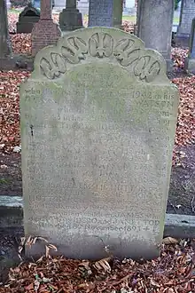 She died on 11 January 1960 at her home in London.[8] She was buried with her parents in the Grange Cemetery in south Edinburgh. Her gravestone, sculpted by Pilkington Jackson, stands near the centre of the south-west extension.