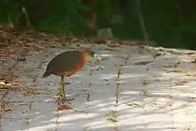 The isabelline bush-hen (Amaurornis isabellina), also known as Sulawesi waterhen or isabelline waterhen, is a large, up to 40 cm long, rufous and brown rail. The term isabelline refers to the colouration. It is the largest member of the genus Amaurornis. Both sexes are similar with olive brown plumage, pale green bill, greenish brown legs and rufous below.