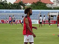 His signing for Singapore Premier League side Home United was announced on 13 July 2018, coming in to fill the vacant slot for foreign players left by Sirina Camara (whose season had been prematurely cut short by an ACL injury).[9] He made his debut for the Protectors in a Singapore Cup loss against Tampines Rovers where he was introduced as a substitute.[10] He followed up his debut by scoring his first goal for the club in the AFC Cup ASEAN Zone Finals a week later, scoring the goal that earned his team a 1–1 draw in the first-leg.[11]