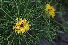 Isopogon ceratophyllus, commonly known as the horny cone-bush or wild Irishman, is a plant of the family Proteaceae that is endemic to the coast in Victoria, South Australia and on the Furneaux Group of islands in Tasmania. It is a small woody shrub that grows to 100 cm high with prickly foliage. It is extremely sensitive to dieback from the pathogen Phytophthora cinnamomi