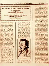Israel's Messenger was founded in 1904 by the Sephardi Jewish businessman Nissim Elias Benjamin Ezra (1883–1936) as the official mouthpiece of the Shanghai Zionist Association, which had been established by Ezra the year before.[1] Ezra served as the paper's Editor-in-Chief for more than 30 years until his death in 1936.[2][3] In addition to promoting Zionism, the paper reported on the activities of the Jewish communities in Shanghai and the rest of China, as well as world events. It was published fortnightly, and later monthly.[4]