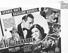 It Had to Happen is a 1936 American drama film starring George Raft and Rosalind Russell. The movie was written by Kathryn Scola, and Howard Ellis Smith, and directed by Roy Del Ruth. It is based on the 1909 short story "Canavan, the Man Who Had His Way" by Rupert Hughes.