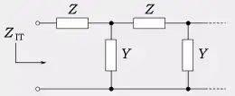A simple generic L-circuit is shown in the diagram consisting of a series impedance Z and a shunt admittance Y. The iterative impedance of this network, ZIT, in terms of its output load (also ZIT) is given by,[4]