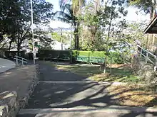 The park is situated on a parcel of land sandwiched between Enoggera and Latrobe Terraces on Cooks Hill. It was, and remains crown land designated for road purposes, but by 1922 the cutting along Latrobe Terrace negated future road use. The road survives only in the asphalted walkway beside the park, linking Enoggera and Latrobe Terraces.[1]