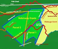 The Nolichucky Grants were two of five property transactions made near present-day Elizabethton, Tennessee at the Sycamore Shoals of the Watauga River, collectively known as The Watauga Treaties. The Path Grant Deed was for lands in East Tennessee and Southwest Virginia needed by Richard Henderson & Co to permit free passage into Kentucky and the property of the Great Grant Deed. That transaction was concluded a few days earlier on March 17, 1775. The Charles Roberson Grant Deed and two Jacob Brown Grant Deeds clarified ownership of existing settlements.