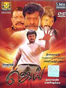 Thiagarajan purchased the remake rights of the successful of V. V. Vinayak's successful Telugu film Aadi (2002) and signed on R. Madhesh to be the film's director. An initial pre-production poster of the film was reported in the media to have attracted a clash with another film in production during the period, Saamy (2003), which featured Prashanth's paternal cousin Vikram.[1] Madhesh planned Tibet as a potential location to film and began negotiations with international stunt choreographers Sammo Hung and Yuen Woo-ping to have them in the film. However, after filming a song featuring Prashanth and lead actress Simran which was choreographed by Remo D'Souza, he left the project and began work on another film Madhurey, starring Vijay.[2] He was then replaced by Kannada director S. Narayan, who with the venture marked his debut in Tamil cinema.[3] Simran also subsequently left the project and the song which had been shot was converted into an item number, the song was shot at AVM Studios with a set erected costing 1 and half crore with using a technology called Mirror Image.[4] The team then approached Preity Zinta, though the actress was unwilling to commit to star in a Tamil film during the period.[5][6] Subsequently, the team signed on London based actress Anshu Ambani, who had appeared in the Telugu films Manmadhudu (2002) and Raghavendra (2003).[7] Producer Thiagarajan also made an acting comeback with the film after a long gap with Jai and featured as father to his real life son, Prashanth, while Rajkiran and Rajan P. Dev (who played the role in original film) were signed on for other pivotal roles.[8] The film was briefly put on hold while Prashanth considered starting another project titled Soldier, but plans were shelved and Jai progressed.[9]