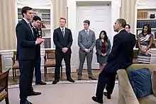 Wood (left) and members of Team Rubicon meet President Barack Obama in the Oval Office in 2013. | |