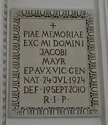 Salzburg Cathedral - wall tablet commemorating Jakob Mayr, Auxiliary Bishop in Salzburg
