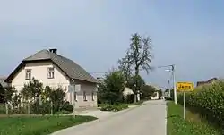 Jama stands above Lake Trboje—the reservoir of the Mavčiče Hydroelectric Plant,[3] which was created in 1986—and the now-submerged Zarica Gorge. The gorge is composed of conglomerate rock, which was used to make millstones.[4] A cave known as Ulrich's Grotto (Slovene: Urhov kevder) lies below the village in the former gorge. The cave is 8 meters (26 ft) long.[5]