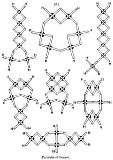 - ↑ Dewar, James (1869) "On the oxidation of phenyl alcohol, and a mechanical arrangement adapted to illustrate structure in the non-saturated hydrocarbons," Proceedings of the Royal Society of Edinburgh 6: 82–86.