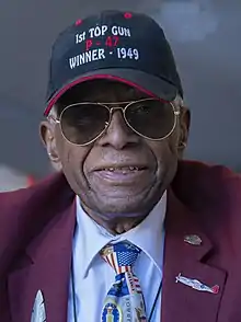 Harvey is best known as the first African American USAF jet fighter pilot to fly combat operations in the Korean War.[1] Harvey and his 332nd Fighter Group Weapons pilot team won the USAF's inaugural "Top Gun" team competition in 1949.[3][4][5][6][7] Along with every member of the Tuskegee Airmen, he received the Congressional Gold Medal in 2006.[8] Harvey, along with George Hardy and fellow 1949 Top Gun winner Harry Stewart Jr., is among the last surviving members of the Tuskegee Airmen.[9]