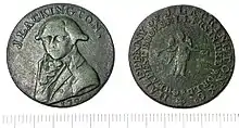 Later that year, Lackington minted a token which customers could use as an in-store currency. The token had Lackington's image on the obverse and the reverse read "HALFPENNY of J. LACKINGTON & Co." "CHEAPEST BOOKSELLERS IN THE WORLD." Lackington became somewhat of a celebrity in London. A flag would fly above the bookstore when he was present, and he rode through the streets in a custom stagecoach, inscribed with his personal motto: “Small profits do great things.” A catalogue of Lackington's available inventory was regularly printed, and book orders were fulfilled for places as far away as the United States. According to Lackington, the first edition of his catalogue contained 12,000 titles.[2][3]