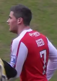 Born in Chester, Cheshire, Reed began his career in Wrexham's youth system aged 16 in 2003.[3] He signed his first professional contract with the club on 20 August 2004.[2] He made his first-team debut as a 79th minute substitute in a 4–1 defeat at Wycombe Wanderers on 27 September 2005.[4] He joined Glentoran on loan until the end of the 2005–06 season in January 2006 and made five appearances for the Irish Premier League side.[5] After returning to Wrexham, manager Denis Smith said "While it was not easy for him with a change of manager so early in his spell at Glentoran, he knuckled down" and in June 2006 signed his professional contract with the club.[6] Reed joined Northern Premier League First Division team Colwyn Bay on an initial one-month on 28 October 2006,[7] making his debut the following day in a 1–0 victory over Alsager Town.[8] His first goal for the club came against Goole in November 2006, and having scored four goals in five appearances he returned to Wrexham on 1 January 2007.[9][10][11]