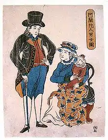 When he arrived in Dejima for the second time in August 1817 he was accompanied by his wife Titia Bergsma, whom he had married in 1815; his son Johannes; Petronella Muns, a Dutch wetnurse; and an Indonesian maid. The ladies and the little boy were not allowed to stay. In the short time they stayed there, till December 1817, they were often drawn by artists, who had never seen other than Japanese women, and 500 different prints widely circulated throughout the country.