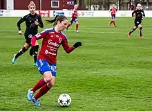 Ross agreed a professional contract with Vittsjö GIK at the end of December 2012, joining fellow Scotland international Ifeoma Dieke at the club.[11][12] Ross scored on her debut for Vittsjö in a pre-season friendly match against Danish side B93/HIK/Skjold in February 2013.[13] After 11 goals in her debut season, Ross was linked with a transfer to English FA WSL club Arsenal Ladies.[14] Both Ross and Dieke extended their contracts with Vittsjö for another season in December 2013.[15] Ross left Vittsjö after the 2015 season, having scored 51 goals in 82 appearances for the club.[16]