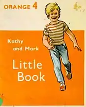 Working with Philippa Murray, Rona Munro created an updated series for Nisbet and Co called Kathy and Mark. In the UK there were three Kathy and Mark Little Book collections, each of four volumes: Green 1-4 (1973),[13] Orange 1-4 (1973),[14] and Turquoise 1-4 (1974).[15] They incorporated small in-line illustrations in place of certain words, such as 'umbrella'. Nisbet published a variety of Kathy and Mark books with other colours and titles.