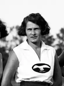 ![]() Janina Skirlińska in 1932 (wording below emblem on uniform shirt reads "Krakow") | ||||||||||||