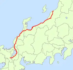 - Origin: Chūō-ku, Niigata (originates at junction with Routes 7, 17, 49, 113 and 116)