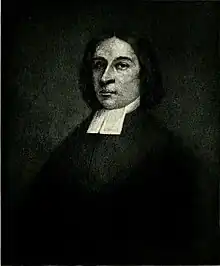 The Eliot name was well known before Jared's birth. His grandfather, John Eliot of Roxbury, Massachusetts,[4] was a missionary to the Massachusett and Wampanoag nations for 40 years, translating the Bible into the Natick language.[5] Herbert Thomas, author of Jared Eliot, states that “(John) Eliot went quite beyond religious doctrine in dealing with the Indians and taught them hygiene and better living”.[6] John's actions in attempting to help the Indians gave the Eliot name social status in the New England theocracy.[7] Jared's father, Joseph Eliot, was also a well-known figure in New England. He graduated from Harvard College in 1658, remaining in Guilford for the rest of his life as a minister at a nearby Congregational church.[7] Joseph was also regarded as a "clerical physician", due to his interest in medicine.