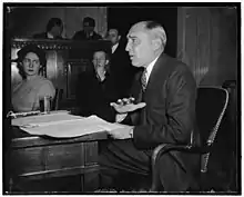![]() Testifying before the Senate Unemployment Committee in 1938 | |