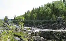 Jay Cooke State Park is a state park of Minnesota, United States, protecting the lower reaches of the Saint Louis River. The park is located about 10 miles (16 km) southwest of Duluth and is one of the ten most visited state parks in Minnesota. The western half of the park contains part of a rocky, 13-mile (21 km) gorge. This was a major barrier to Native Americans and early Europeans traveling by canoe, which they bypassed with the challenging Grand Portage of the St. Louis River.[2] The river was a vital link connecting the Mississippi waterways to the west with the Great Lakes to the east.