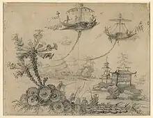 Jean-Baptiste Pillement (Lyon, 24 May 1728 – Lyon, 26 April 1808) was a French painter and designer, known for his exquisite and delicate landscapes, but whose importance lies primarily in the engravings done after his drawings, and their influence in spreading the Rococo style and particularly the taste for chinoiserie throughout Europe.