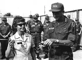 In December 1965 he was appointed as deputy commanding general United States Army Vietnam (USARV).[1] He arrived in South Vietnam in January 1966.[3] During this time he conducted a review of the relationship between USARV and Military Assistance Command, Vietnam.[4] In April 1966 he requested the deployment of a Women's Army Corps (WAC) detachment to support USARV and he finally received approval from the Joint Chiefs of Staff on 25 July 1966 with the first WACs arriving in late October 1966.[5]
