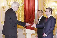 ![]() de Gliniasty presenting his credentials to Dmitry Medvedev in May 2009 | |