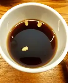 Jeho-tang (제호탕; 醍醐湯) is a traditional Korean cold drink made with honey and several ingredients used in traditional Korean medicine. The ingredients include omae (오매; 烏梅, "smoked unripe plums"), sain (사인; 沙仁, "medicinal cardamom"), baekdanhyang (백단향; 白檀香, "white sandalwood"), and chogwa (초과; 草果, "black cardamom").[1] The powdered ingredients are mixed together with honey and water and then boiled.[2] After the liquid is chilled, it is diluted in cold water.[2] It was considered the best summer drink in Korean royal court cuisine.[2][3]