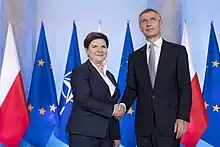 - ↑ "NATO chief calls for confronting Russia in speech to Congress". Politico. 3 April 2019. Archived from the original on 3 August 2019. Retrieved 3 August 2019.
