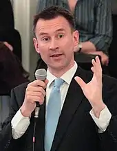 The son of a senior officer in the Royal Navy, Hunt was born in Kennington and studied philosophy, politics and economics at Magdalen College, Oxford, where he was President of the Oxford University Conservative Association. He was first elected to the House of Commons in 2005 and was promoted to the Shadow Cabinet as Shadow Minister for Disabled People and later as Shadow Secretary of State for Culture, Media and Sport. Hunt served in the coalition government as Secretary of State for Culture, Olympics, Media and Sport from 2010 to 2012, where he led the drive for local TV, resulting in Ofcom awarding local TV broadcasting licences in respect of several cities and towns. Hunt also oversaw the 2012 London Olympics, which received widespread acclaim. His previous business interests mean that he is one of the UK's richest politicians.[1][2][3][4]